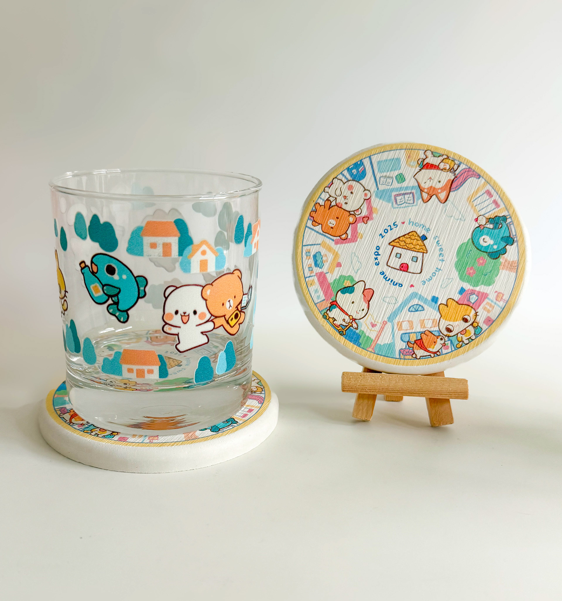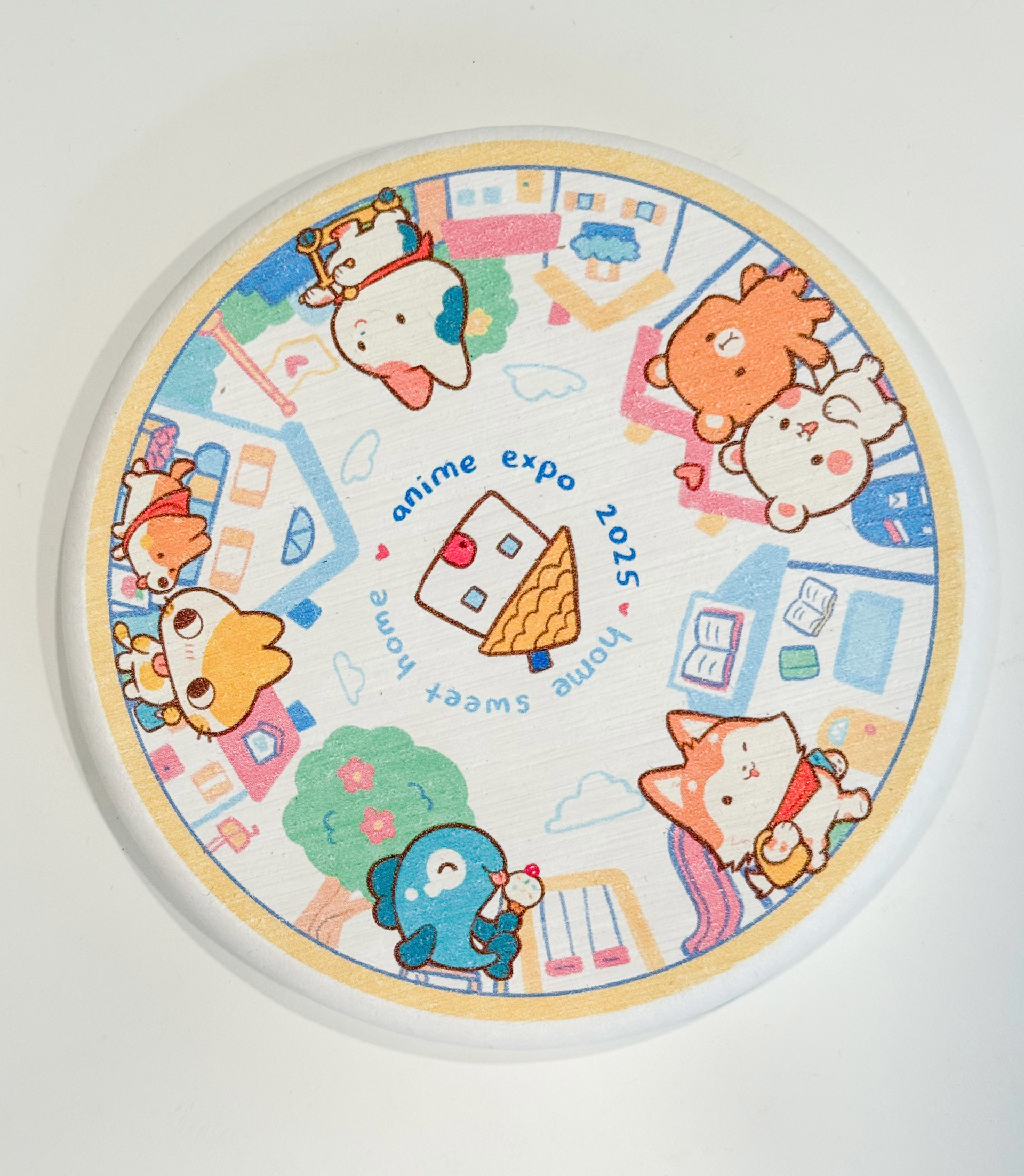 Coaster I designed featuring my take on characters from popoalu, liliuhms, milk & mocha bear and umvvelt ~! Matching the theme of a picnic in the neighborhood.