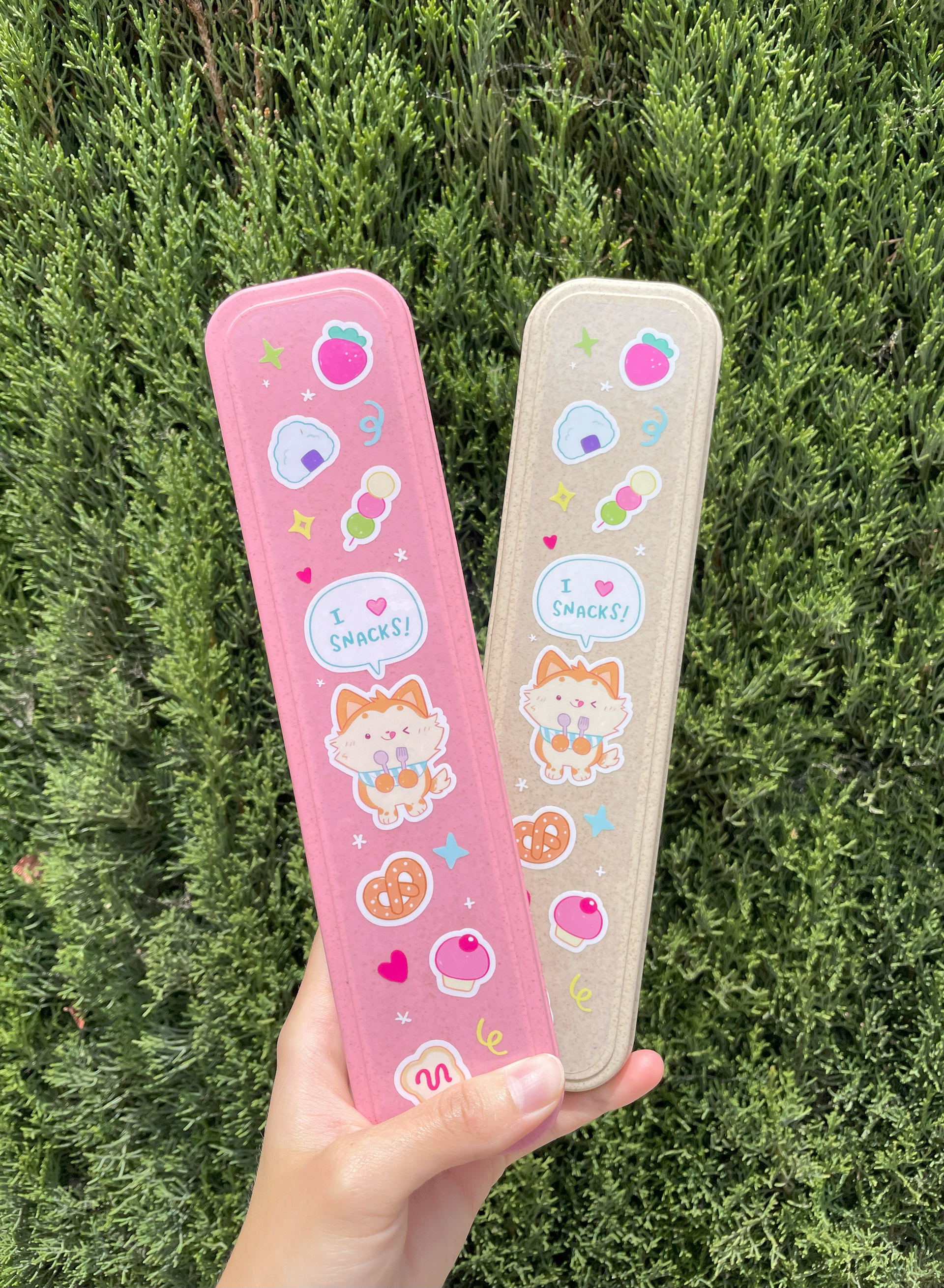A set of dishwasher-safe utensils in a cute portable case! I made the front design.
